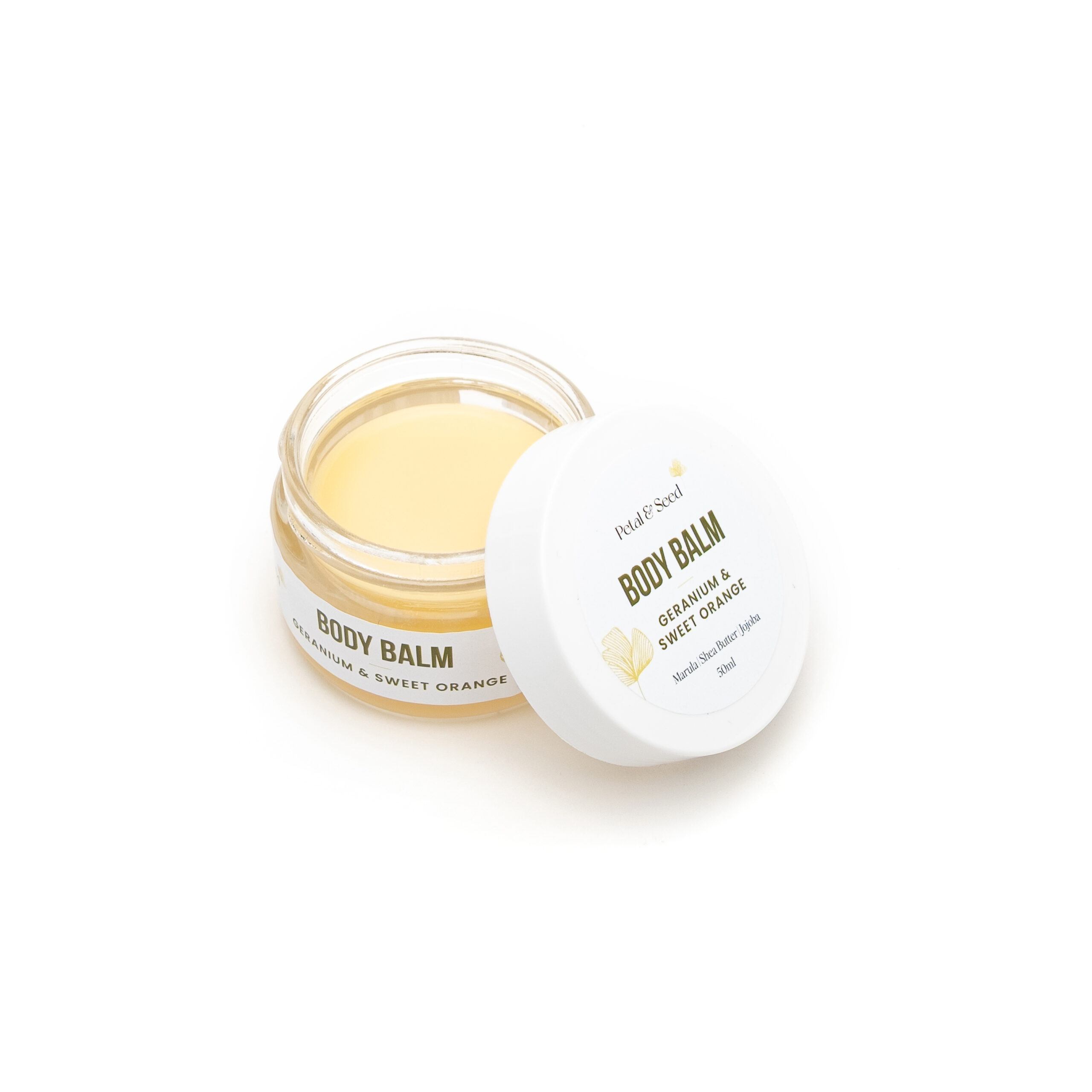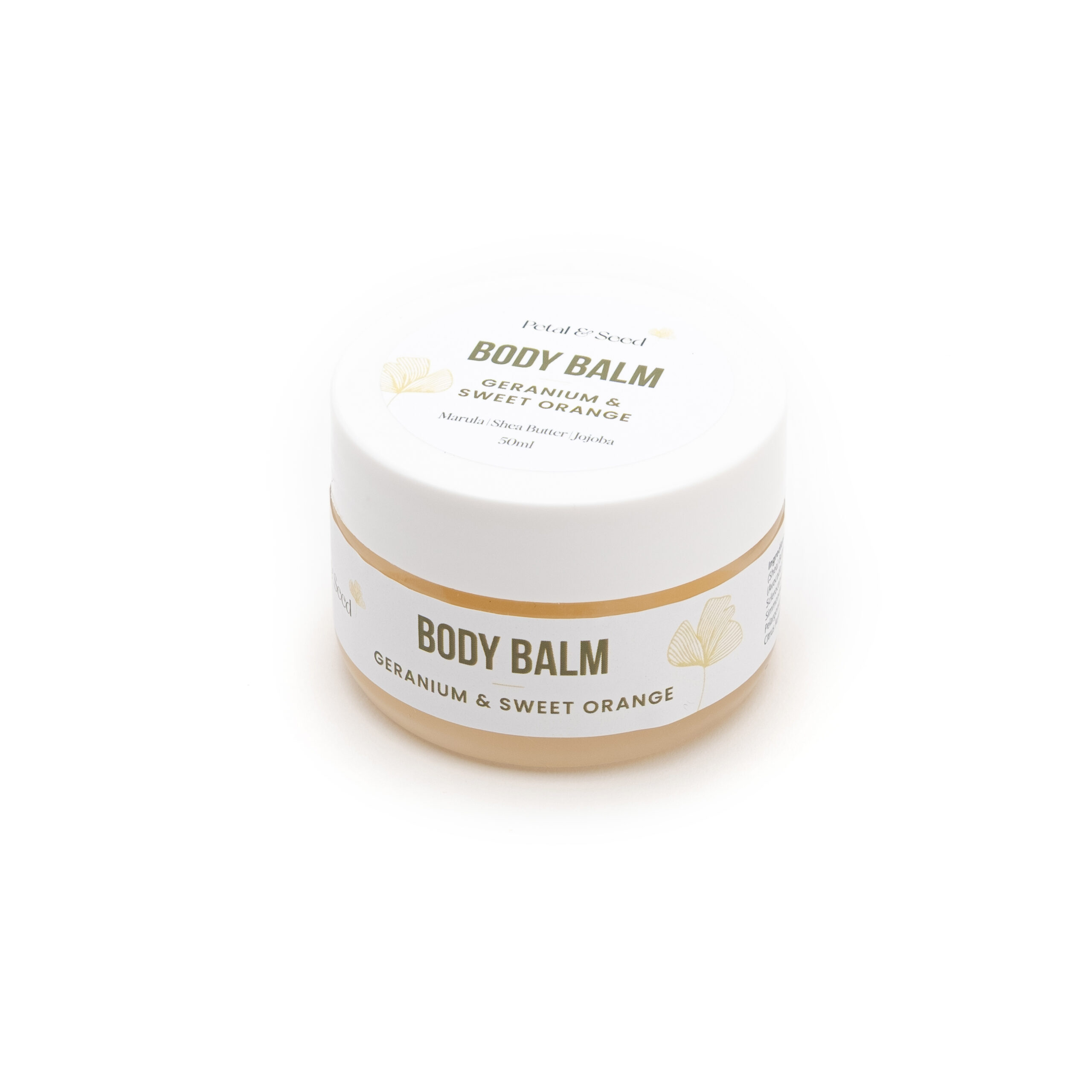 A natural body balm crafted with skin-loving oils and butters. Enriched with shea butter, marula and jojoba oils to deeply moisturize and soothe the skin, while beeswax creates a light, protective barrier. Gently fragranced with essential oils of geranium and sweet orange to calm and uplift the senses.